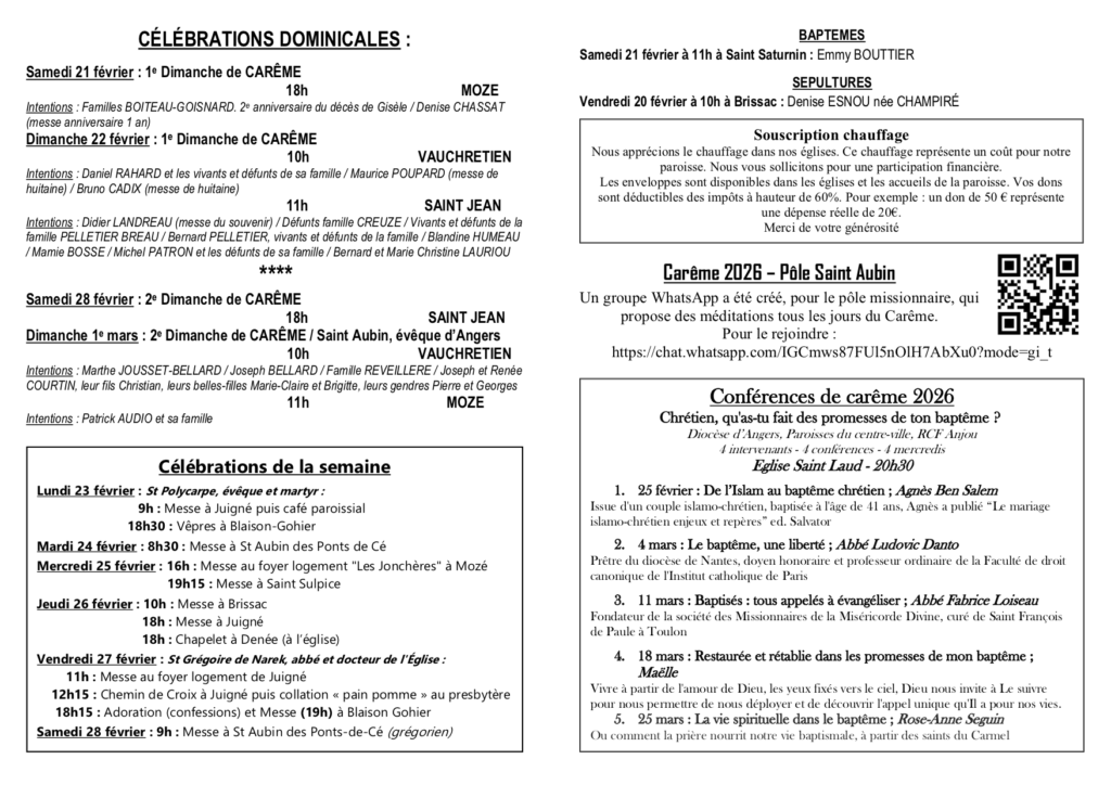 Que ce temps de Carême soit pour nous une occasion de puiser dans sa force. En nous appuyant sur la prière, le jeûne et la charité, nous pouvons, à notre tour, transformer nos faiblesses en actes de courage. Le Christ a marché avant nous : suivons ses pas, ensemble, avec confiance.